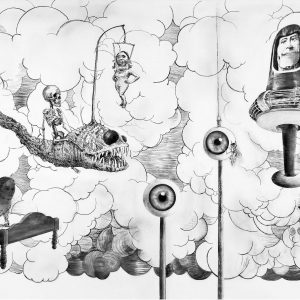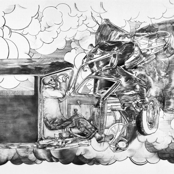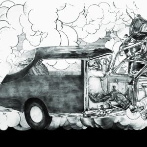 Sargasse nique & Cie : In-situ installation Exhibition Draw Galerie du jour agnès b Charcoal on canevas 15 m x 1,20 m 2005.