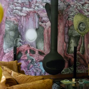 Grotte n°1 : Fresque fusain & peinture acrylique sur toile 6 m x 2,50 m 2008 Collection Fabrice Ausset.