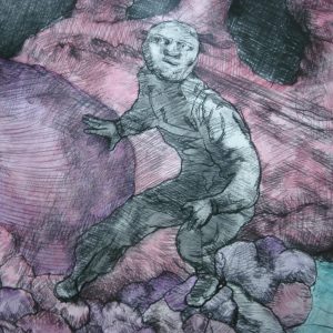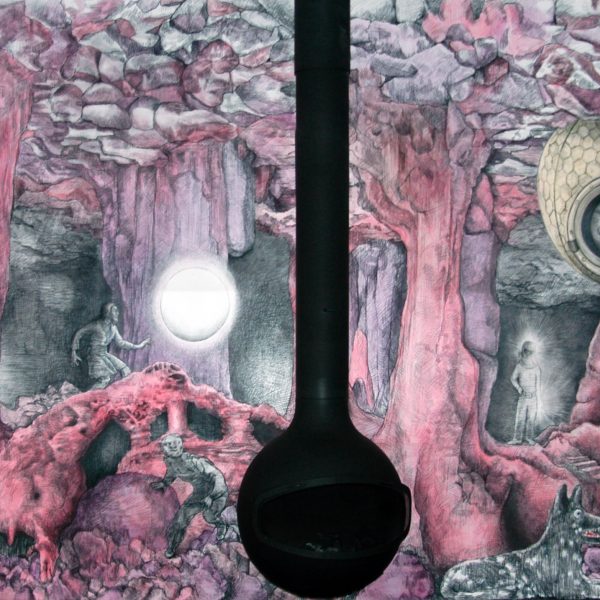 Cave n°1 : Wall-drawing charcoal & acrylic painting on canvas 236,22 in x 98,42 in 2008 Collection Fabrice Ausset.