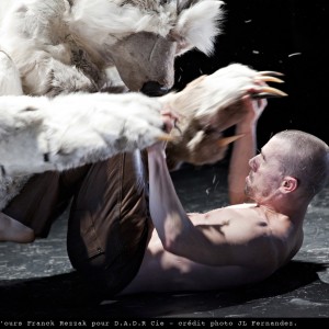 Design et conception de l’ours pour « F » chorégraphié et dansé par David Drouard./ Design and production of the « bear » (sculpture/costume) for the choreography of « F » (faun) danced and choreographed by David Drouard.